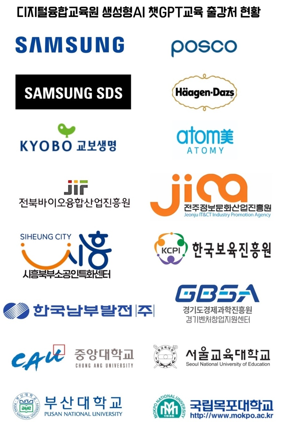 - 대학 : 인제대, 목포대, 서울교대, 중앙대 CEO과정, 부산대 AI캠프 등