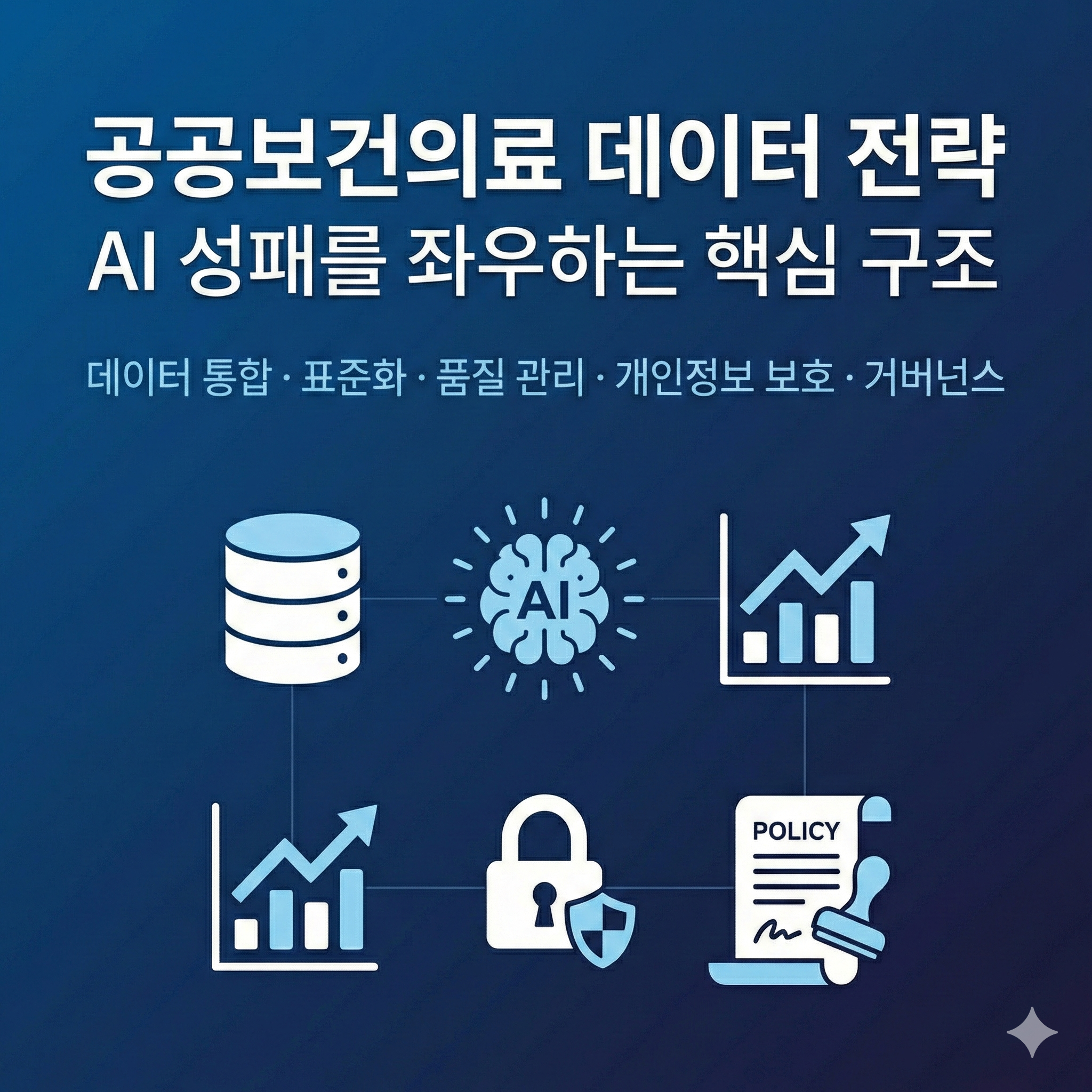 공공보건의료 AI의 성공은 데이터 전략에 달려 있다. 데이터 수집, 표준화, 품질 관리, 개인정보 보호, 데이터 거버넌스까지 공공보건의료 데이터 전략의 핵심 구조를 설명한다.